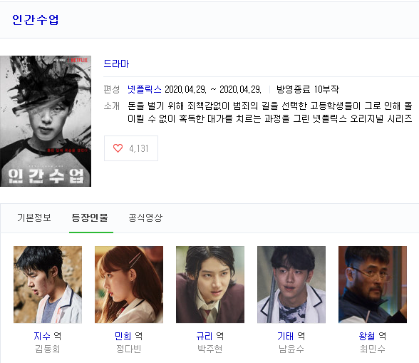 넷플릭스 오리지널 [인간수업] 을 알게 되었어요