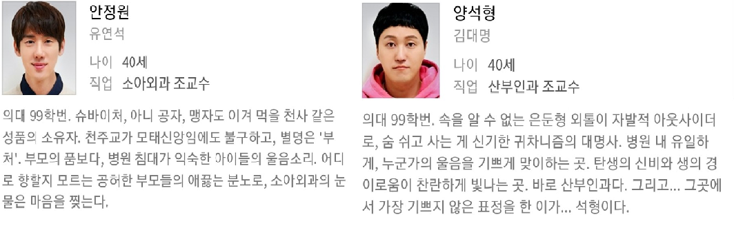 의사도 아니고, 병원에 가는걸 무서워하는 평범한 사람인 저도 이들의 이야기에 공감하고 병원 에피소드에 눈물을 흘릴때가 많습니다. 5명의 주인공들과 병원에 의료진들이 환자를 대하는 마음을 느껴서일텐데요.
